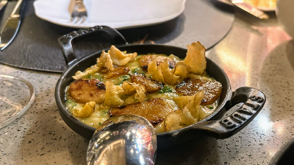 Alsace bacon threaded through the whole thing, salty, smoky, cut into pieces that demanded chewing. And somewhere in there, a citrus note again. Not obvious. Just enough lift to stop the richness from sinking you.