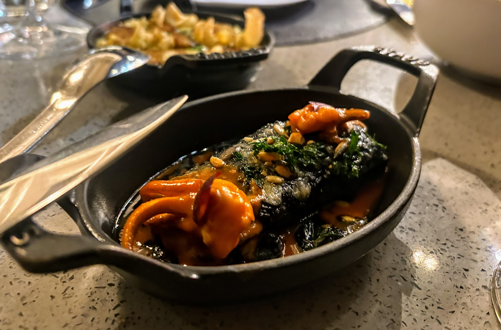 The chicken was cut cleanly, skin blistered and golden, resting over layered greens, bright, herbaceous, controlled. There’s a visual language Grain Street keeps returning to: vibrant greens against rich protein. It’s not accidental. It’s reassurance.